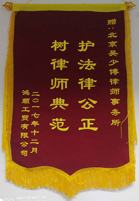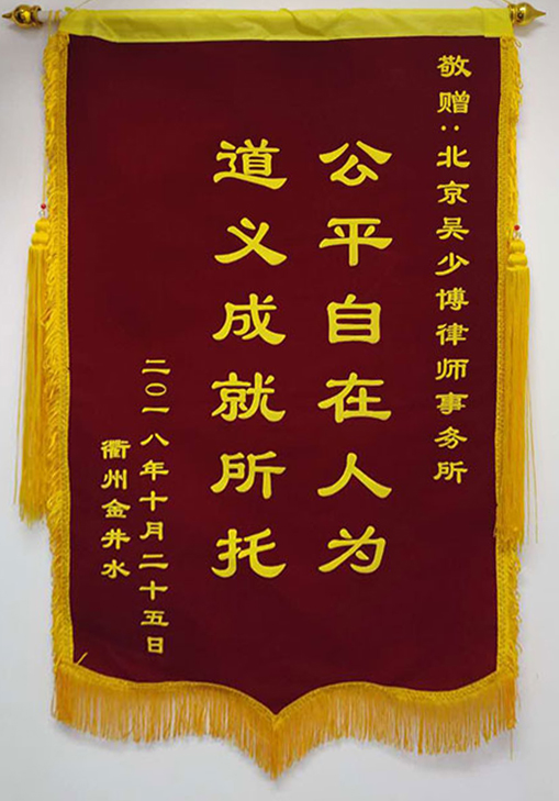 • 張帆收到石家莊客戶贈送的錦旗